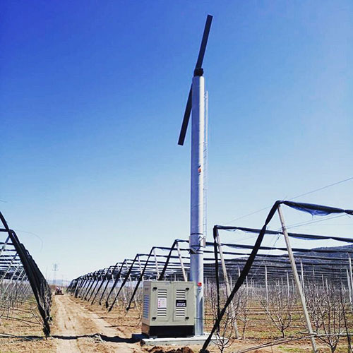 Ветрогенераторы затягивают более теплые слои воздуха сверху, чтобы рассеять холодный воздух в саду и защитить плодовые деревья от повреждений, вызванных заморозками.